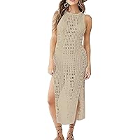 Knitted Crochet Maxi Cover Ups Dress Sexy Backless Hollow Out Beach Dress For Women Summer Holiday Lady Outfits On Onbuy